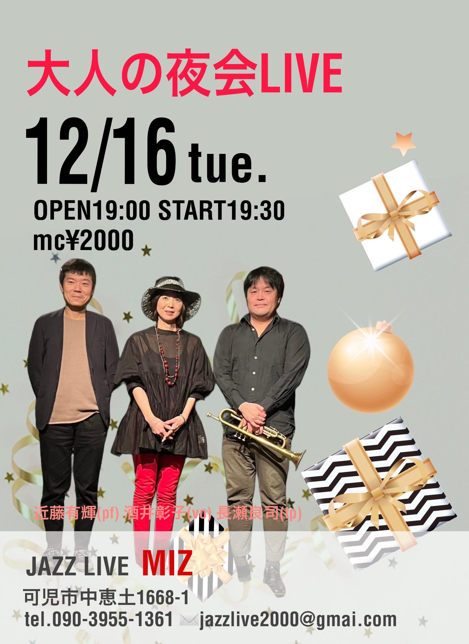 大人の夜会 酒井彰子(vo)・長瀬良司(tp)・近藤有輝(pf)